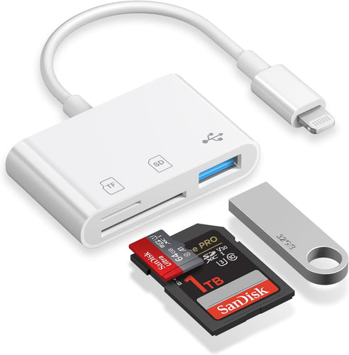 [Apple MFi Certified] SD Card Reader for iPhone, Lightning to SD Card Reader, 3-in-1 SD Card Reader for SD Card/Micro SD Digital Camera Adapter Compatible with iPhone, Plug & Play SD Card Reader