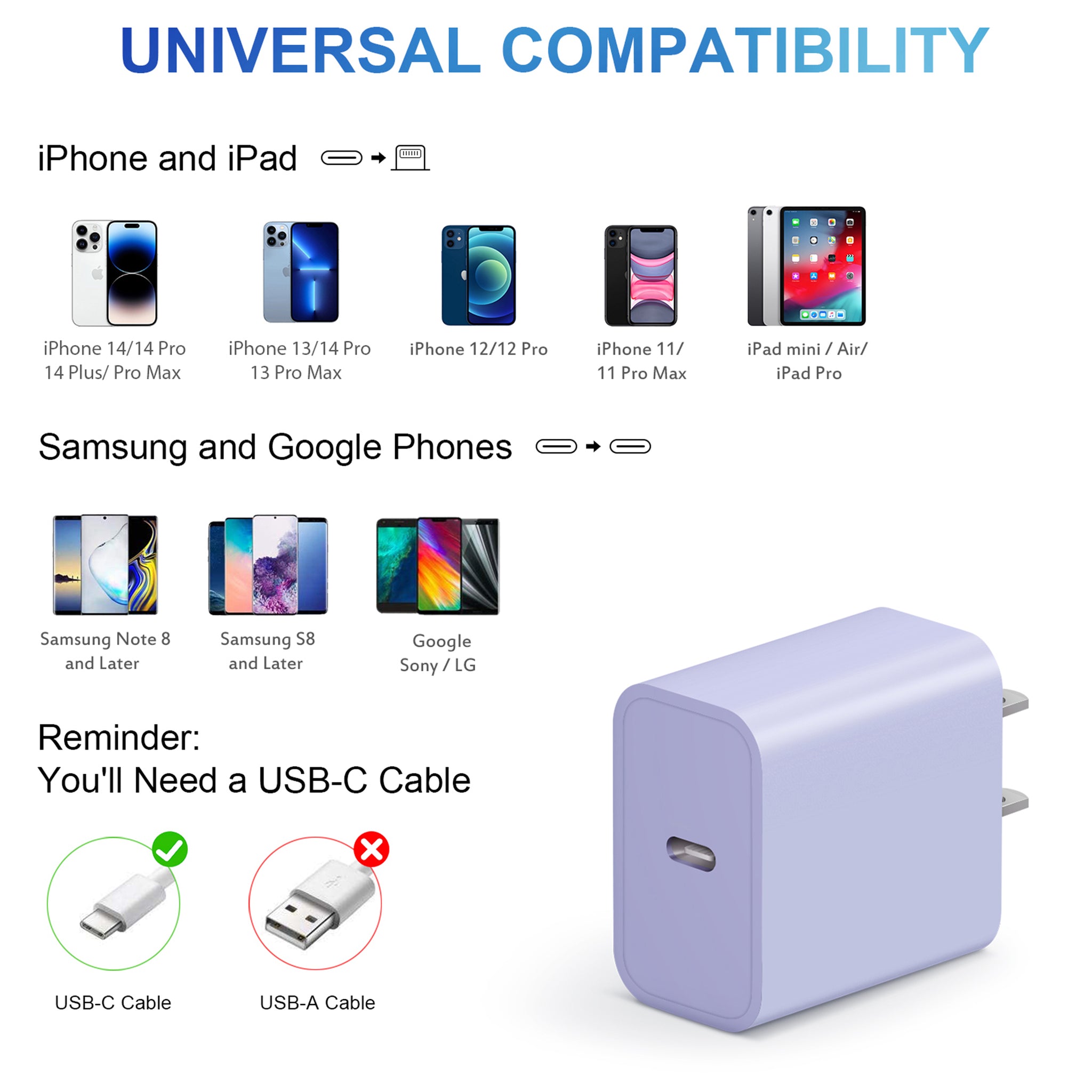 iPhone 14 13 12 11 Super Fast Charger-20W PD Type C Power Wall Charger with 6FT Charging Cable Compatible with iPhone 14/14 Pro Max/13/13 Mini/13 Pro/13 Pro Max/12/12 Pro/iPad Air-Purple