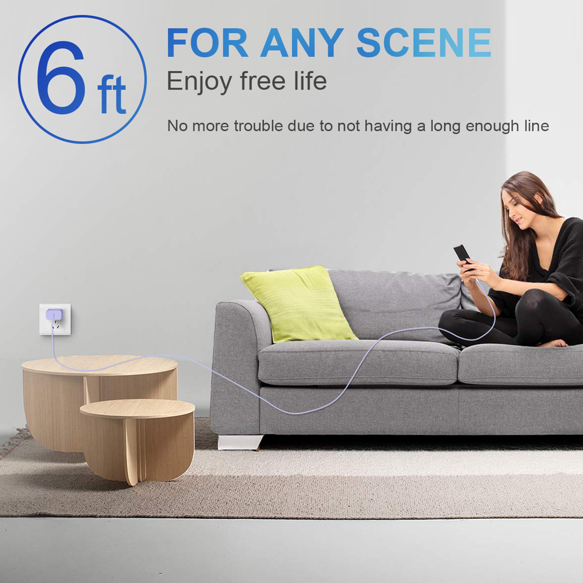 • SAFETY EFFICIENT FAST CHARGING-The Power Delivery Wall Charger for iPhone owns bulit-in multi-protection system, avoiding from over-voltage, over-charge, over-heat, etc. The smart chip including in the MFi certified fast charging cable match the current required by the iPhone device automatically, charge your iPhone/iPad device fast, safely and steadily.Parallel Cables Long 6 Feet length is convenient for usage while charging and sync at home/office/travel in bed, hotel rooms, and more.