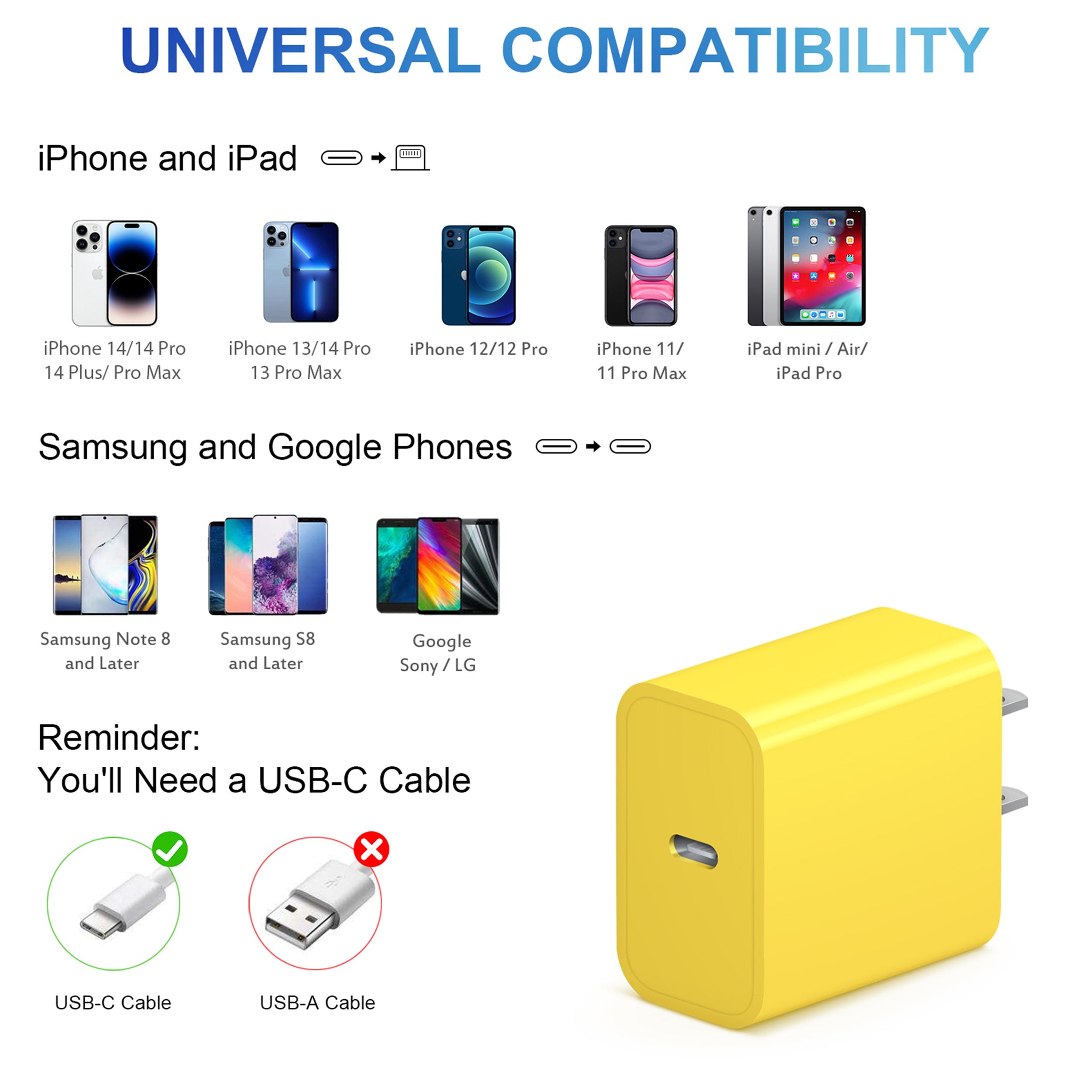iPhone 14 13 12 11 Super Fast Charger-20W PD Type C Power Wall Charger with 6FT Charging Cable Compatible with iPhone 14/14 Pro Max/13/13 Mini/13 Pro/13 Pro Max/12/12 Pro/iPad Air-Yellow