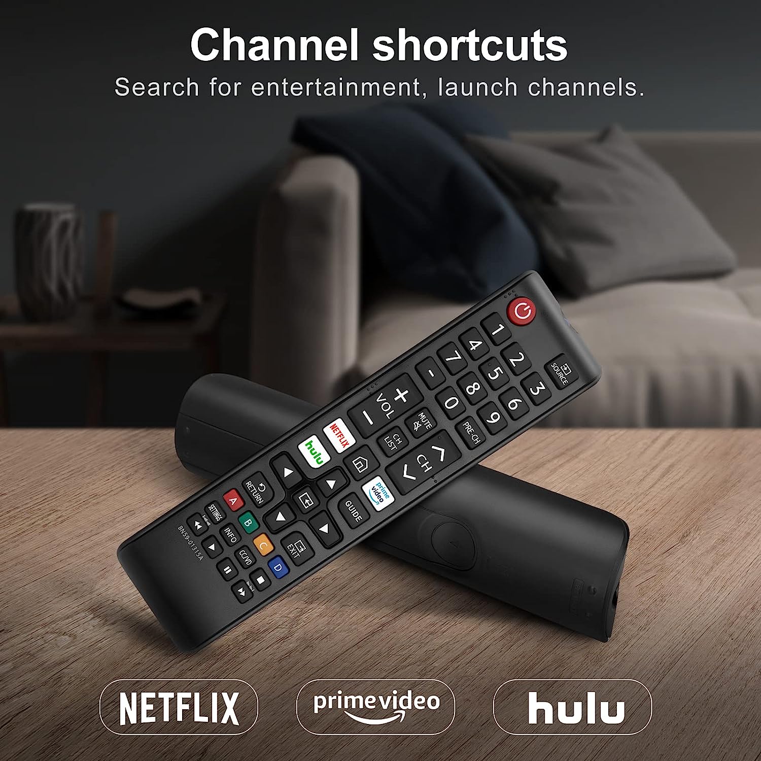 Replacement Compatible for All Samsung Smart TV-This infrared replacement remote works with all Samsung Smart TV, LED, LCD, HDTV, 3D, Series TV,Compatible with All Samsung Series TVs. The universal infrared TV remote features 3 shortcut buttons for Netflix, Prime video and Hulu for extra convenience.
